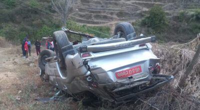 फाखेल सडकमा स्करपियो पल्टिँदा चारजना घाइते