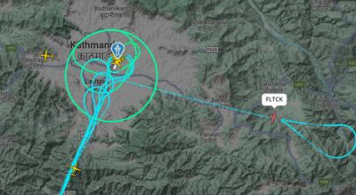 त्रिभुवन विमानस्थलमा फ्लाइट क्यालिब्रेसनका कारण आकाशमा फन्को मार्दै जहाज