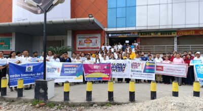 ‘ग्लोबल मनी विक २०२६’ अन्तर्गत बिर्तामोडस्थित बैंक तथा वित्तीय संस्थाहरूको प्रभातफेरी कार्यक्रम