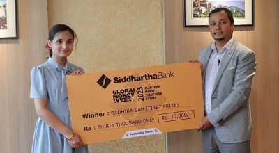 सिद्धार्थ बैंकद्वारा ग्लोबल मनि विक भिडियो प्रतियोगिताका विजेताहरुलाई पुरस्कार वितरण