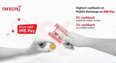 आइएमई पे मोबाइल टप अपमा ५ प्रतिशत क्यासब्याकको निरन्तरता