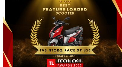 २०२२ को उत्कृष्ट फिचर लोडेड स्कुटरको अवार्ड टिभिएस एनटर्क १२५ रेस एक्सपिलाई
