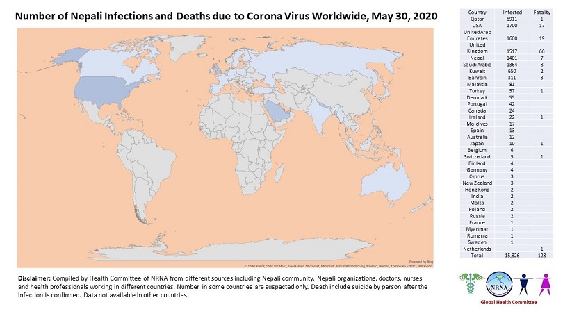 कोरोनाका कारण विश्वभर १ सय २८ नेपालीको मृत्यु, साढे १५ हजार बढीमा संक्रमण