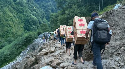 पहिरोले बाटो अवरुद्ध भएपछि चीनबाट यसरी ल्याइरहेका छन् व्यापारीले सामान(तस्बिरहरू)