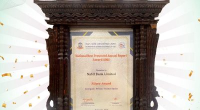 नबिल बैंक राष्ट्रिय उत्कृष्ट वार्षिक प्रतिवेदन अवार्डबाट सम्मानित