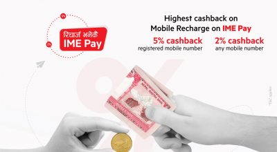 आइएमई पेले फेरि ल्यायो मोबाइल रिचार्जमा ५ प्रतिशत क्यास ब्याक