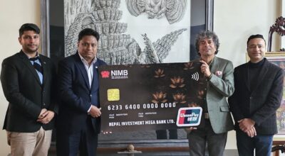 नेपाल इन्भेष्टमेण्ट मेगा बैंकले ल्यायो युनियन–पे कार्ड सेवा