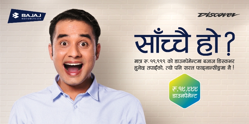 बजाज डिस्कभर २० हजार डाउनपेमेन्टमा पाइने