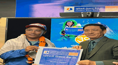 लुम्बिनी विकास बैंकद्वारा किर्तिमानी पर्वतारोहीलाई सम्मान