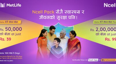 एनसेलका डेटा प्याक प्रयोगकर्ताहरुलाई मेटलाइफको बिमा सुरक्षा