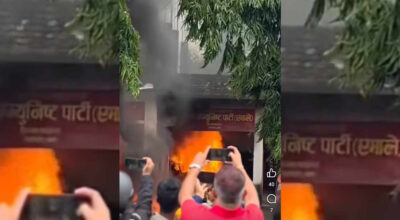 प्रधानमन्त्री ओलीको गृहजिल्ला झापास्थित एमाले पार्टी कार्यालयमा प्रदर्शनकारीले आगो लगाए