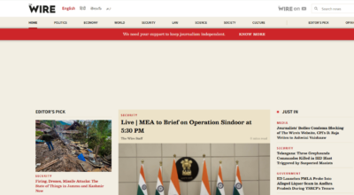 सरकारको आलोचना गर्दै आएको द वायर वेबसाइट भारतभर ब्लक