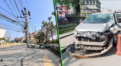 कारले ठोक्दा ११ हजार भोल्ट करेन्ट प्रवाह भइरहेको बिजुलीको पोल ढल्यो, तीनमध्ये १ को अवस्था गम्भीर