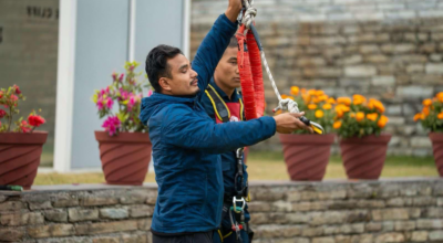 द क्लिफमा ‘कमाण्डो’ तालिमअन्तर्गत नेपाल प्रहरीका प्रशिक्षार्थी बञ्जी जम्प गर्दै