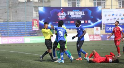 केपी ओली कपमा अराजकता, रातोकार्ड खाँदा खेलाडीले रेफ्रीमाथि हात हाले