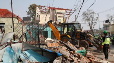 ललितपुर महानगरले न्हु पोखरी क्षेत्रका घरटहरामा चलायो डोजर