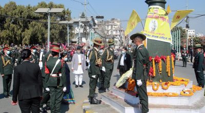 राष्ट्रपति भण्डारीद्वारा पृथ्वीनारायण शाहको सालिकमा पुष्पहार अर्पण