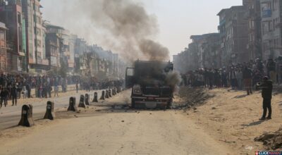 बनेपामा टिपरको ठक्करबाट स्कुटर चालकको मृत्यु, टिपरमा आगजनी