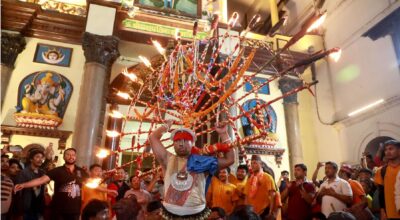 जिब्रो छेडाएर भक्तपुरबाट पशुपतिसम्म पैदल आए श्रेष्ठ, सुनको चम्चाले संस्कृति मन्त्रीले राखिदिए जिब्रोमा तेल