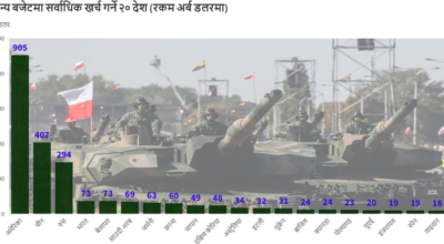 यी हुन् सर्वाधिक सैन्य बजेट खर्च गर्ने २० देश, कुनको कति ?