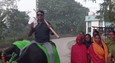 बिहार विधानसभा निर्वाचन : भैंसी चढेर मतदान गर्न पुगे यी व्यक्ति