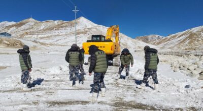 हिमपातले अवरुद्ध कोरला सडकको हिउँ पन्छ्याइँदै