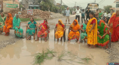 ६ वर्षदेखि निर्माणधीन हुलाकी मार्ग अलपत्र: सडकमै धान रोपेर विरोध