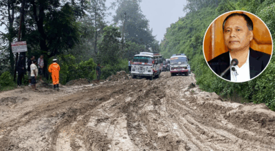 बिपी राजमार्गमा लेदोसहितको पहिरो खस्यो, दुईतर्फी आवागमन अवरुद्ध
