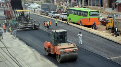 मुग्लिन–पोखरा सडकः दमौली बजारमा धमाधम कालोपत्र हुँदै