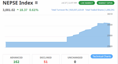 एक वर्षपछि नेप्से ३ हजार विन्दुमाथि उक्लियो