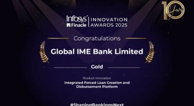 ग्लोबल आईएमई बैंक इन्फोसिस फिनाकल इनोभेसन गोल्ड अवार्ड २०२५ बाट सम्मानित
