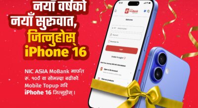 एनआईसी एशिया बैंकको बैंकिङ एपबाट टपअप गर्दा आइफोन १६ जित्ने अवसर