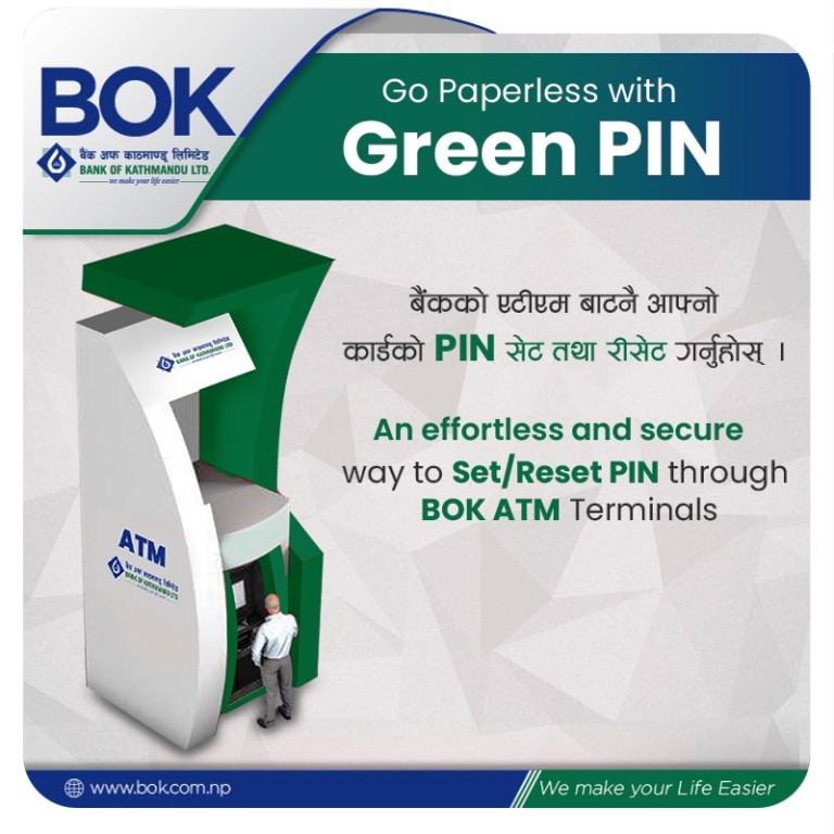 बैंक अफ काठमाण्डूले ल्यायो ग्रिन पिनको सुबिधा