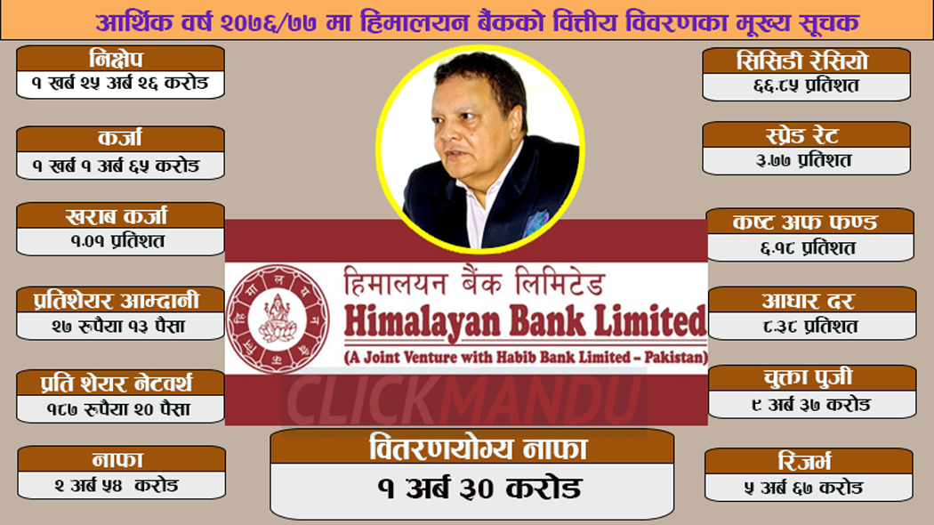 हिमालयन बैंकको खुद नाफा ८ प्रतिशतले घट्यो, लाभांश क्षमता १४ प्रतिशत