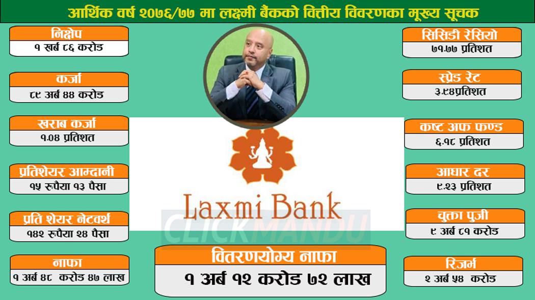 लक्ष्मी बैंकले २० अर्बले निक्षेप बढायो, लाभांश क्षमता ११.४१ प्रतिशत