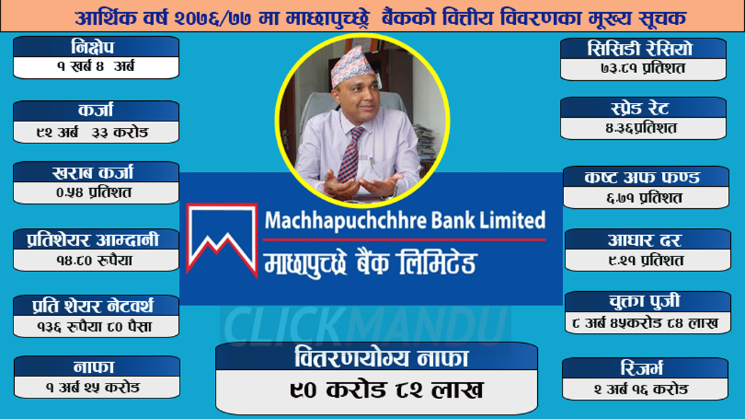 माछापुच्छ्रे बैंकको निक्षेप १९ अर्बले बढ्दा १ अर्ब २५ करोड नाफा