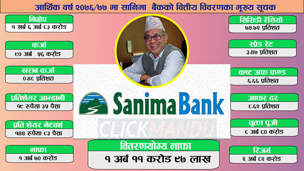 सानिमा बैंकको लाभांश क्षमता १२.६१ प्रतिशत, नाफा १ अर्ब ७० करोड