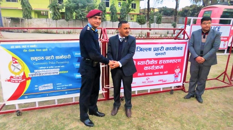 एन आई सी एशिया बैंकद्वारा ब्यारीकेड तथा प्रहरी चेकिङ्ग बोर्ड हस्तान्तरण