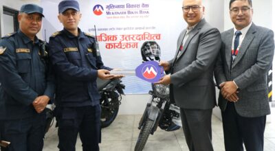 मुक्तिनाथ विकास बैंकद्वारा महराजगञ्ज प्रहरीलाई दियो दुईवटा मोटरसाइकल