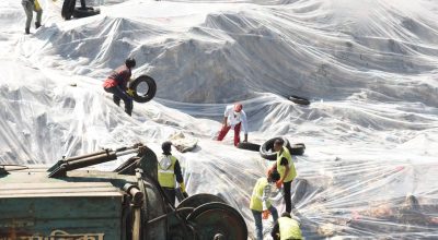 महानगरको फोहोर ट्रान्सफर स्टेशनमा, गन्ध रोक्न जीवातु हालेर प्लाष्टिकले छोपियो