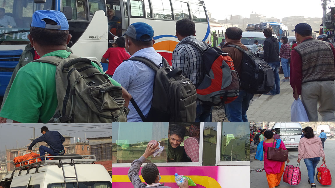 तस्बिरमा हेर्नुहोस् दशैंमा घर जानेहरूको भीड