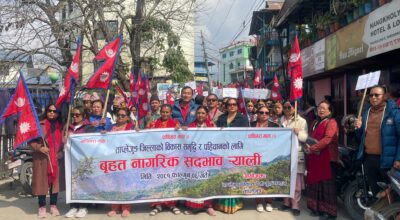 ‘पाथीभरामा केबलकार बन्नुपर्छ’ भन्दै ताप्लेजुङ सदरमुकाममा बृहत सदभाव र्याली